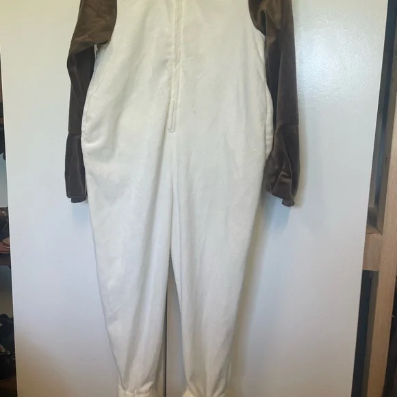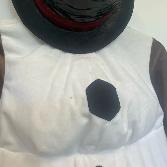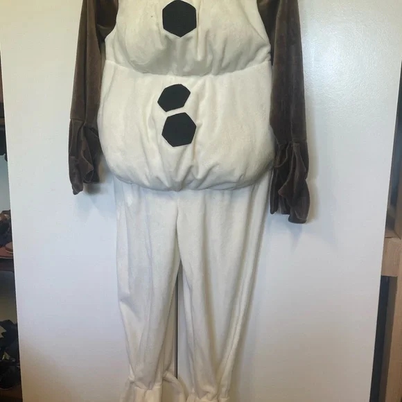 Disney movie frozen character, Olaf. Plush costume with patty belly. Zips up the back. Hands can be easily removed from gloves. Strap on feet goes over shoes.There are a few small spots on the chest and near the feet that I have not tried to remove.Otherwise excellent conditionand priced accordingly. Cute group costume.I have several Elsa and Anna costumes. Happy to bundle.